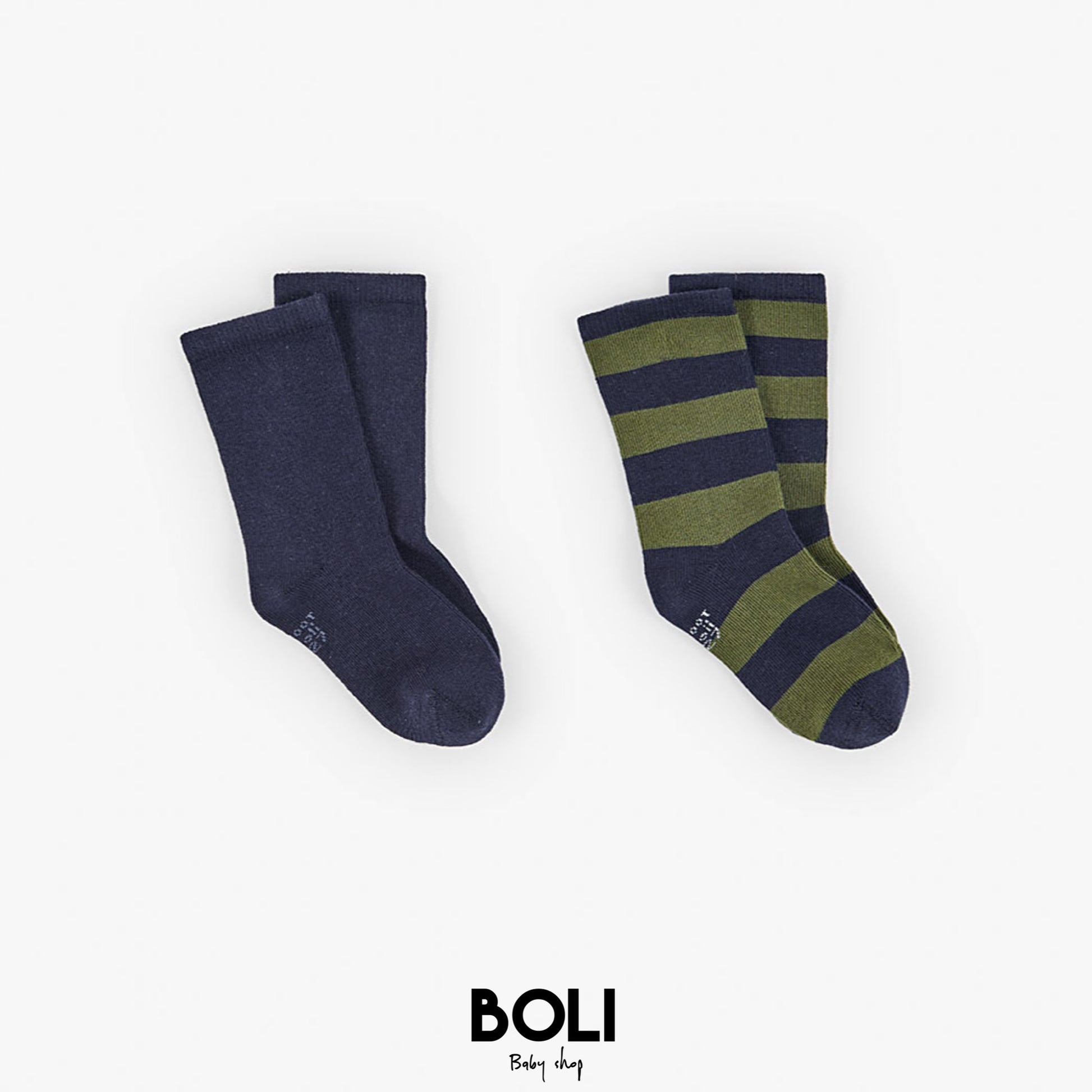 Calcetines de punto azul marino para niños, decorados con elegantes rayas, confeccionados en un tejido suave y elástico que proporciona calidez y comodidad. Perfectos para mantener los pies del niño abrigados durante las temporadas más frías, estos calcetines son ideales para el uso diario.