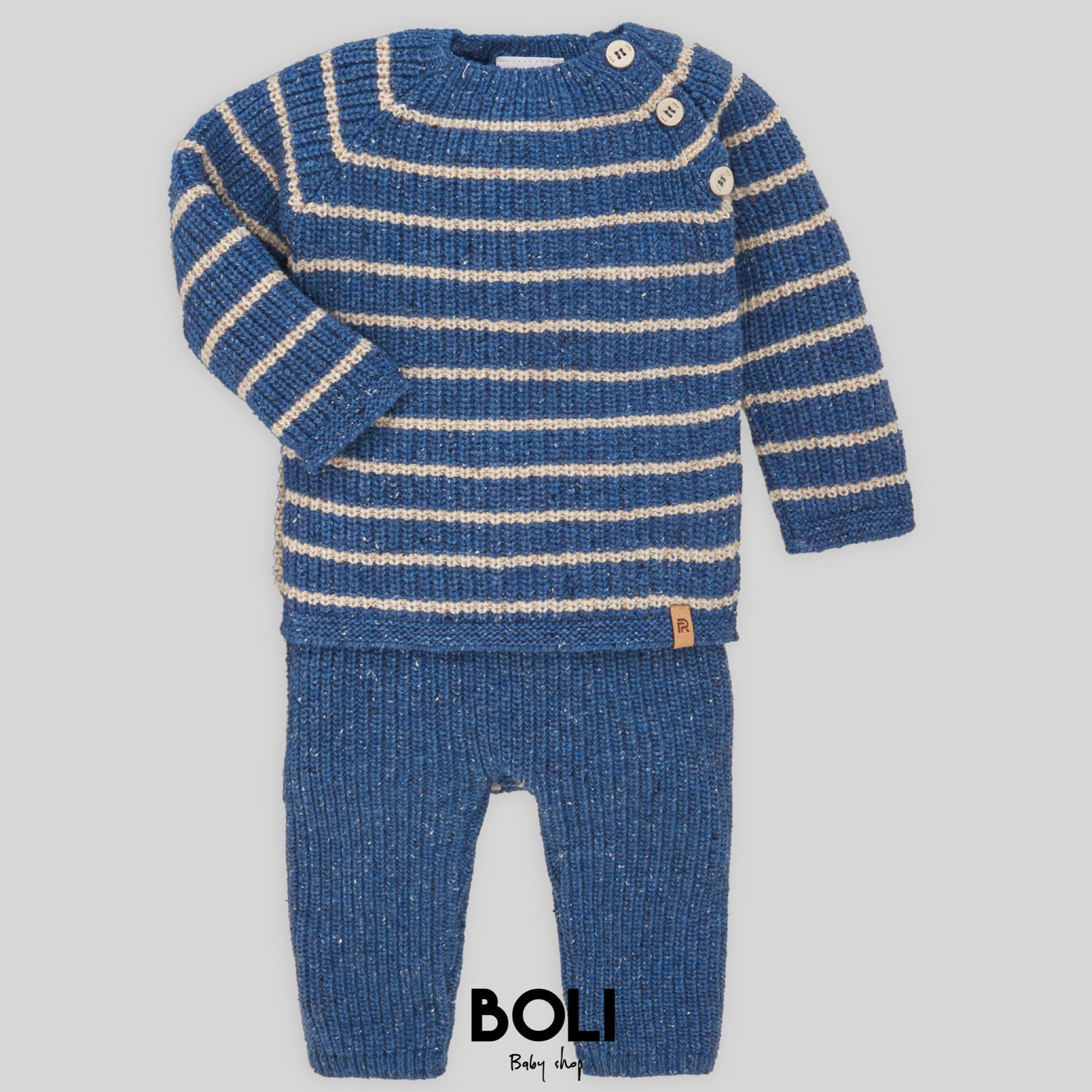 Jubon en punto color azul plomo a rayas. Polaina sin pies a juego en azul plomo.
