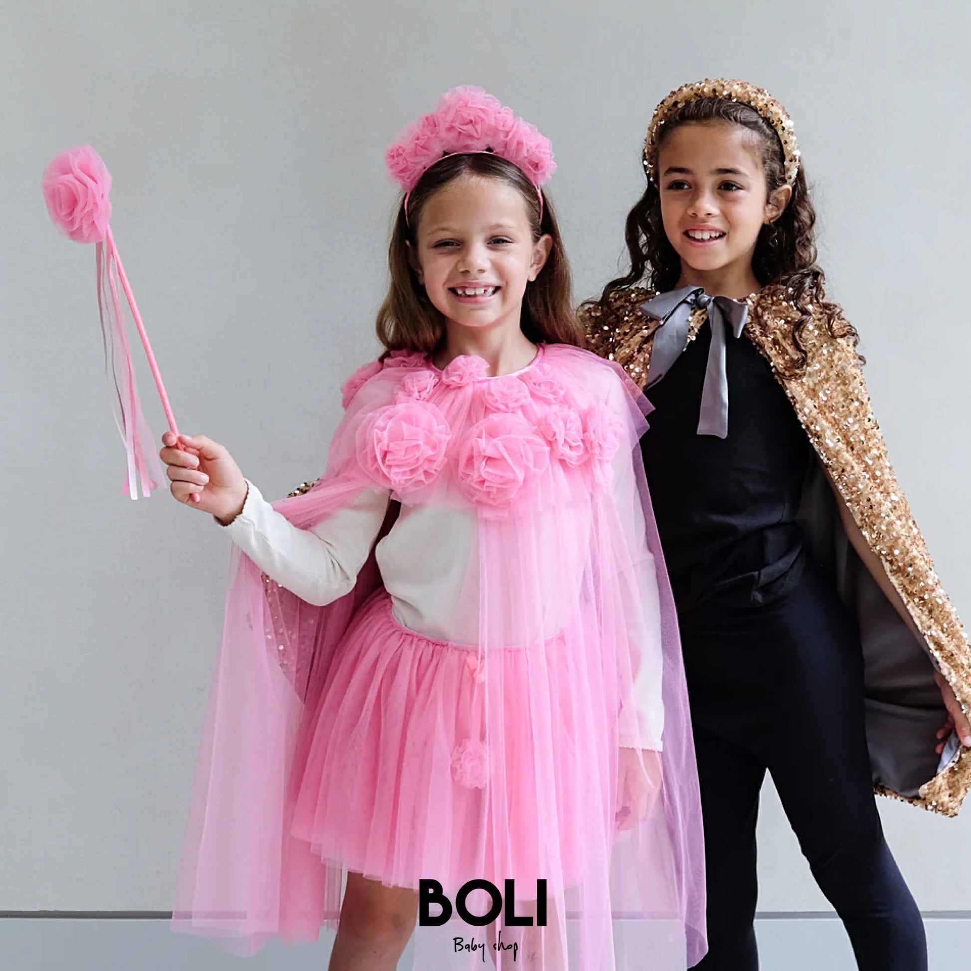 ¡Este tutú de flores con volantes de color rosa brillante fue hecho para girar! ¡Perfecto para una fiesta, clases de baile o simplemente transformar los tiempos de juego! ¿Por qué no combinar con nuestra capa, tocado o varita con volantes rosas para un ajuste totalmente fabuloso?