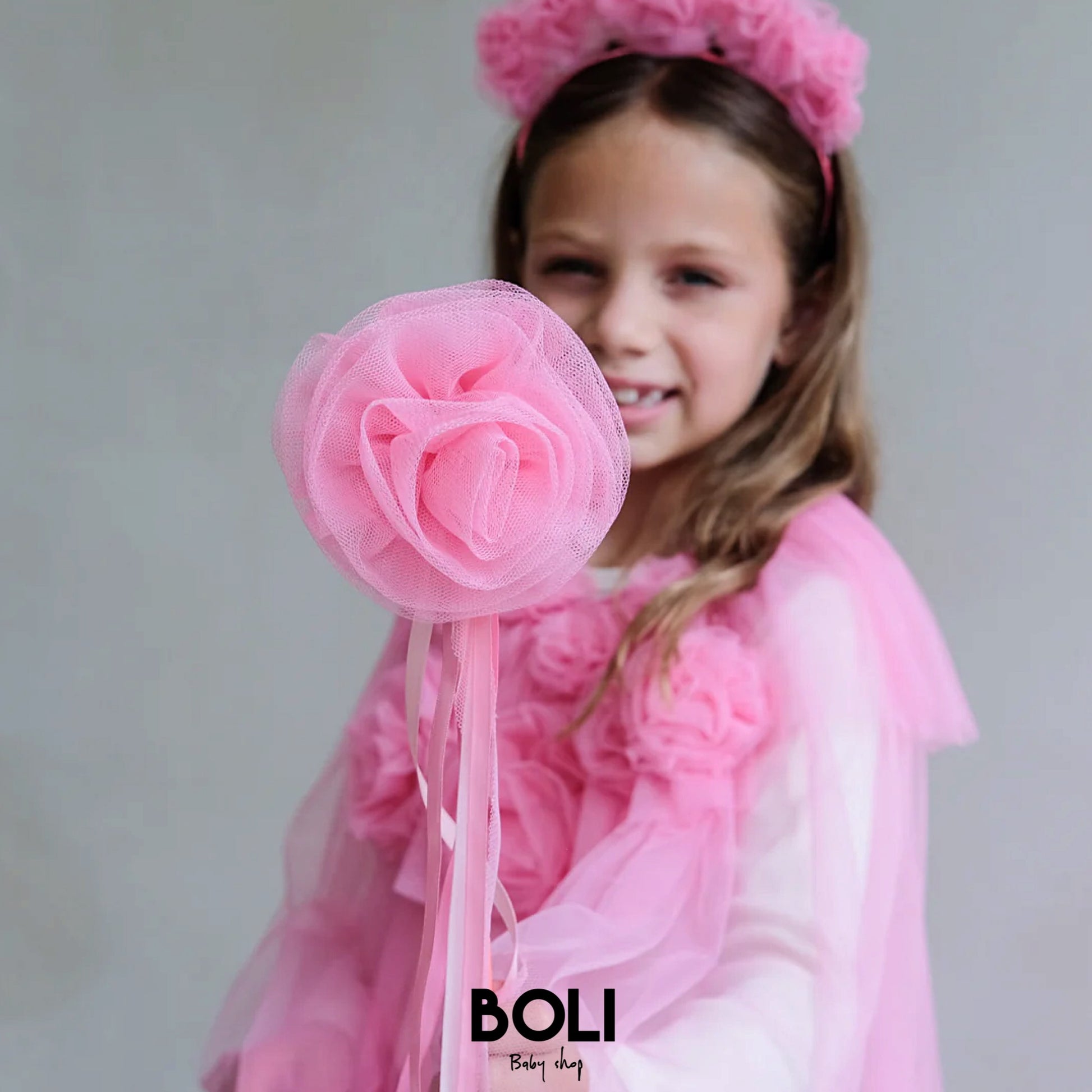 ¡Esta hermosa varita de volantes de color rosa brillante es la pareja perfecta para cualquier pequeña hada de las flores! ¡Por qué no combinar con nuestro tutú, capa o tocado a juego para el look completo!