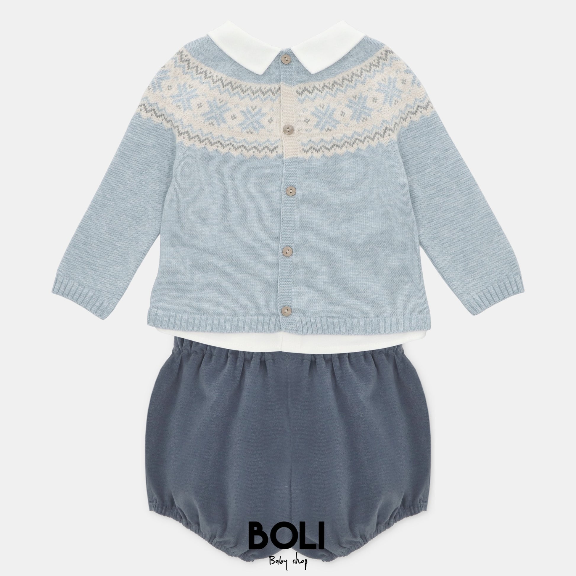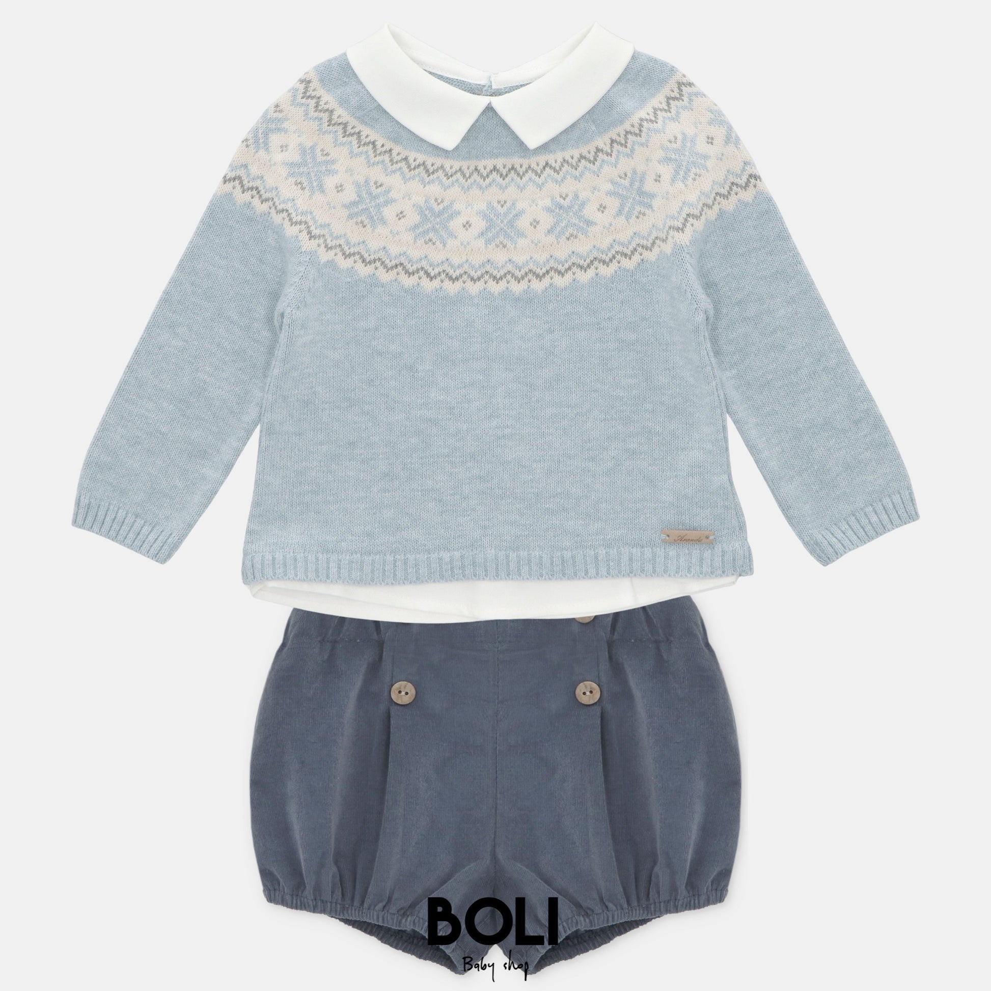 Conjunto de Jersey de punto tejido con falsa camisa y bombacho con botones
