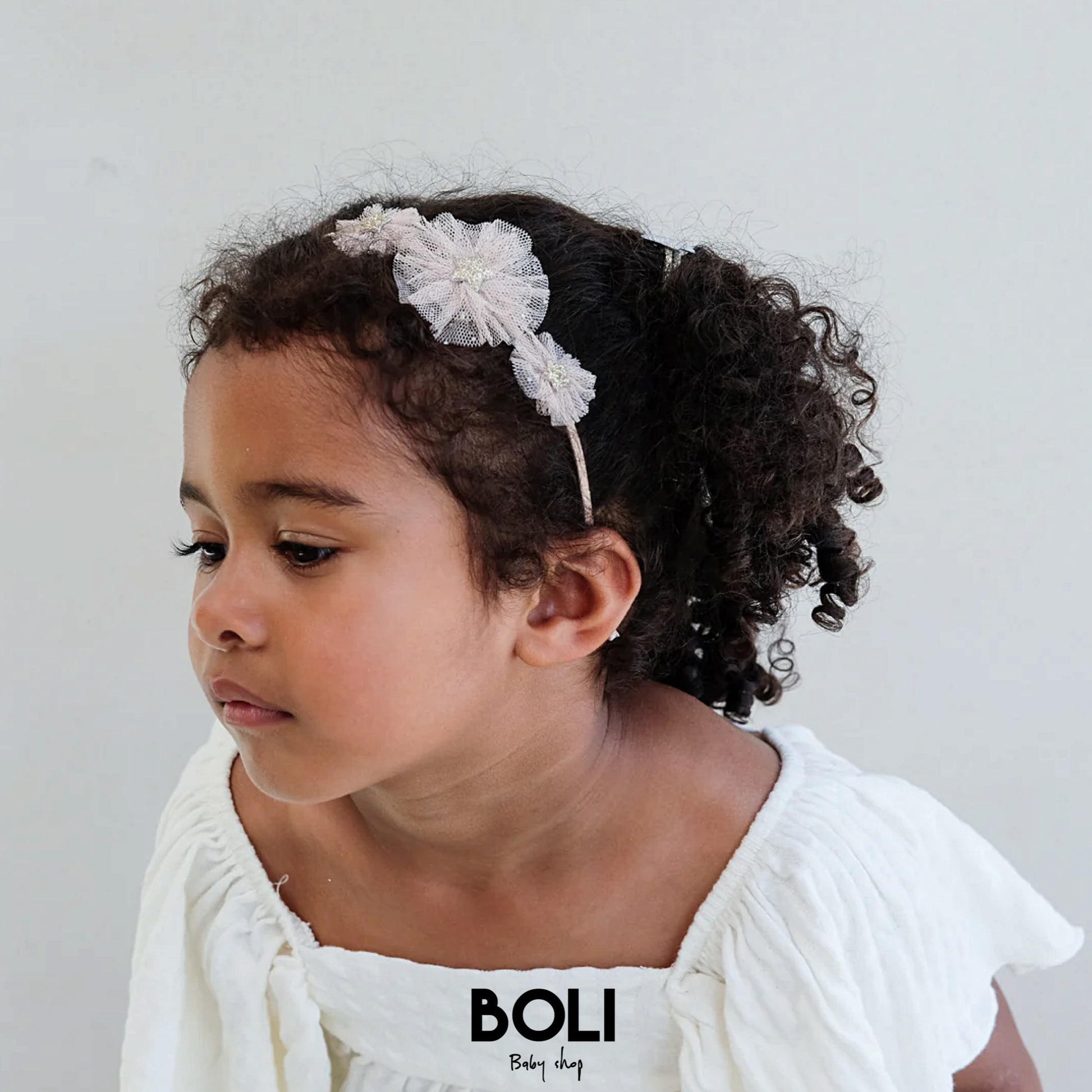 Añade un toque de magia de ballet a cualquier peinado con esta encantadora banda de roseta de tul. Adornado con delicadas rosetas de tul salpicadas con purpurina y cubiertas con centros dorados brillantes. Perfecto para pequeños bailarines o cualquiera que quiera un acento dulce y brillante para alegrar los looks cotidianos.