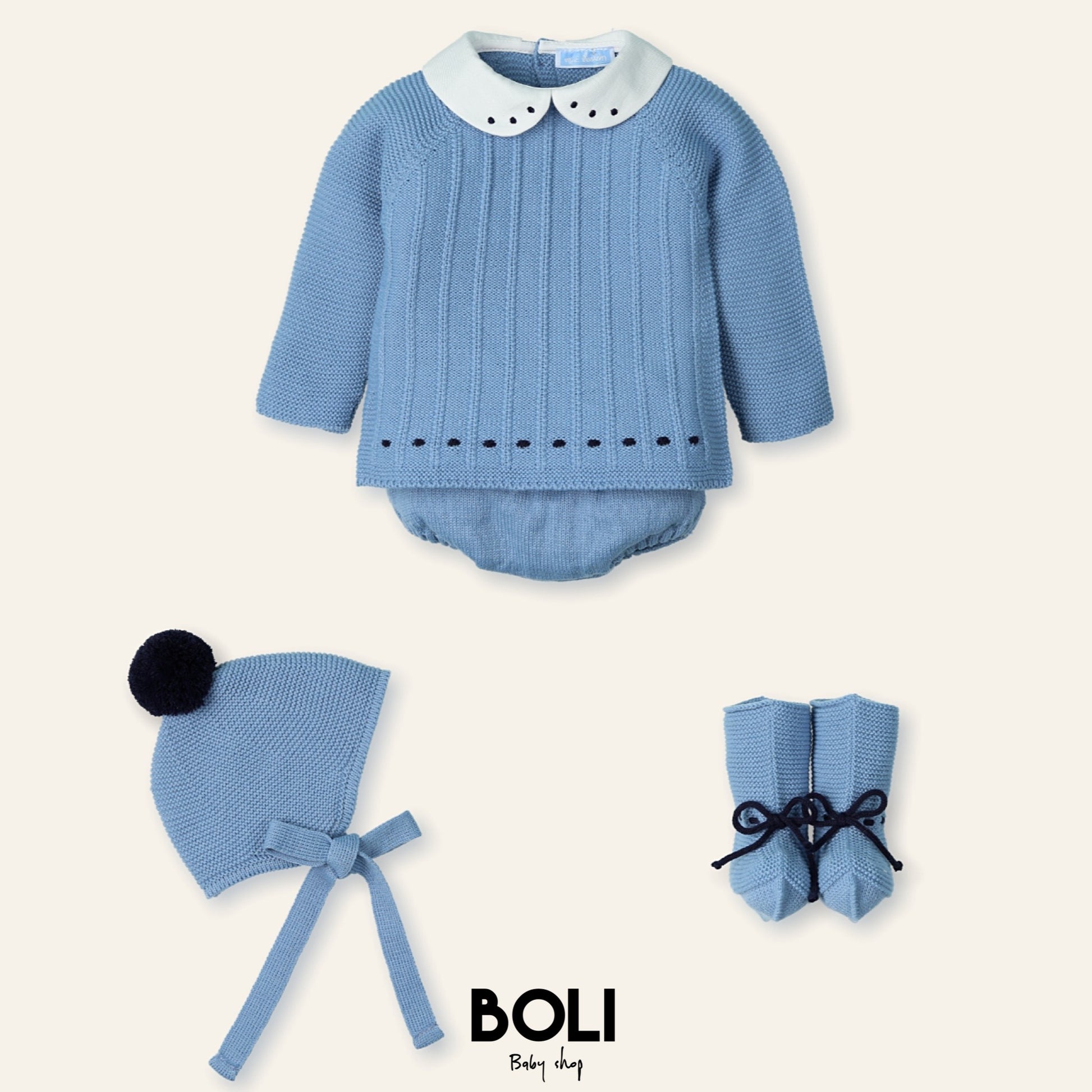 Traje corto con cuello bordado + Gorro + Patucos